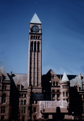 Built in the late 1890s, and once the head seat of the Municipality of Toronto and County of York, this building now serves the city as its municipal courts. The city's departments were moved to the modern buildings just west of this ornate building with (for Toronto,) rather unique architecture.
