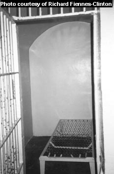 I walked over to where one can look down at the gallows. It's a very short distance away from death row, just a few paces down the hallway and a turn to the left. However, I don't recall ever taking a walk that has left me breathing so tightly. There is a staircase that one comes to, immediately in front of the gallows. The gallows itself is one short flight down. The gallows has two sets of barred doors which prevents the condemned man from fleeing the gallows, back into the building. When the trap door is released, the victim falls into an exposed alcove in an outside courtyard, where any gathered spectators are able to observe the last moments of the execution. In most executions by hanging, the intention is that death comes instantly. The body drops, until the noose is pulled tight, and then the neck is broken. But accidents have been known to happen. One account of the Whelan execution which I've heard, is that death was far from quick.