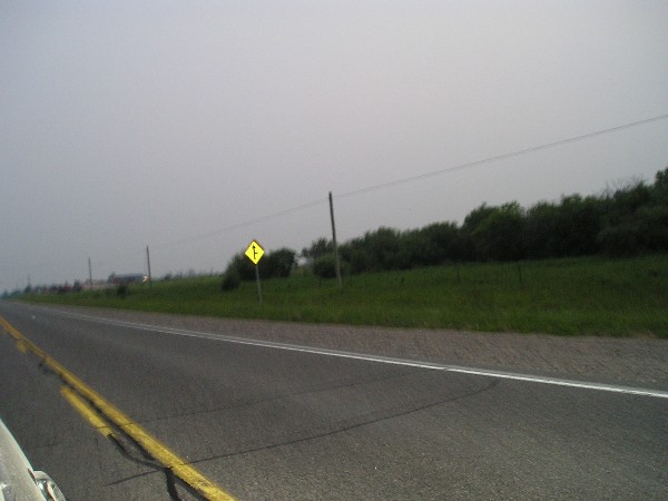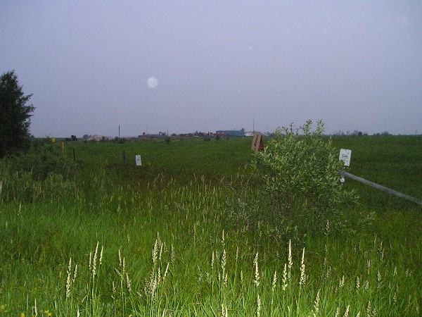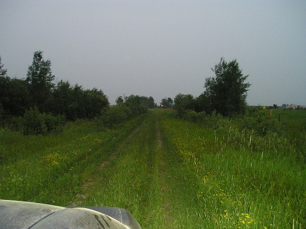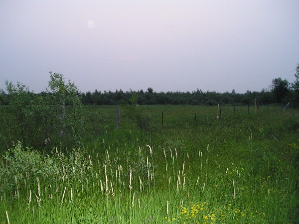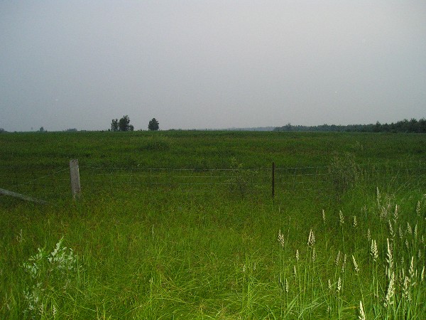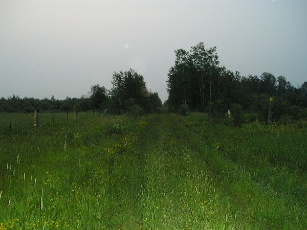 "I finally had an opportunity to drive to my ghost sighting site near Val-Gagné on Hwy 11 with a digital camera, and localize it at 4 AM June 27 2005. The small but marked road is exactly 3 Kms north of Gay's Garage (Ford dealership) in Val Gagné, and about 3 Kms south of Monteith. Included are pics of the road sign as seen when coming from Val Gagné, and the old gravel road that leads past the Natural Gas line by the field where I parked (approx. 150 meters from Hwy) in fall of 1989 at 3 AM to rest. Pics (esp. #03) show the field where, in near total darkness and right after I parked, I first saw a white spot of light crossing the field from left to right, a couple hundred meters away, until out of sight past the tree line for a few seconds. It then reappeared crossing the field a bit closer in the other direction. With my head out my car's rolled down window, I looked and listen for any other sign of light source or sound, but everything was quiet with no traffic going by. It kept crossing back and forth this way, closer every time. I then started making out the shape of a horse pulling a small open carriage and a man sitting on it! Then crossing at about 20 meters away, the man sitting on the carriage just stared at me, with the horse maintaining its path. The horse moved with incredible smoothness. It was on the ground but not really hitting it! What an astounding and beautiful sight! It then slowed down, just about 10 meters from me, and the man looked at me, seemingly wondering what I was doing there. That's when I started my car and raced away like a scolded cat and made it home, still wide awake... I had indeed seen a ghost. It was really an amazing sight. Not just a flash or a blur but a sustained and highly detailed white horse and man on carriage, and well visible from a distance. I wish I had stayed longer. I will try to stop again at night when I get a chance."